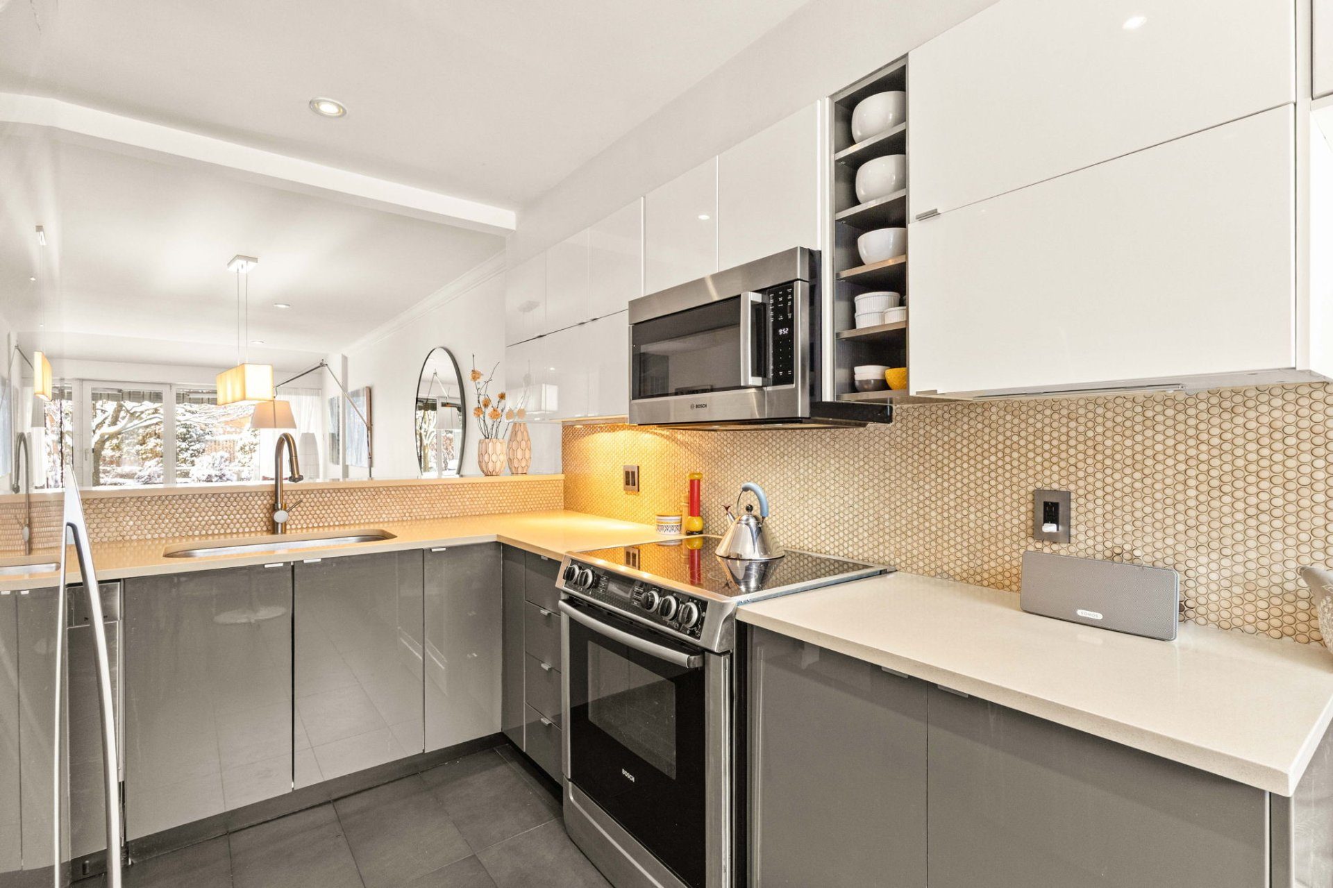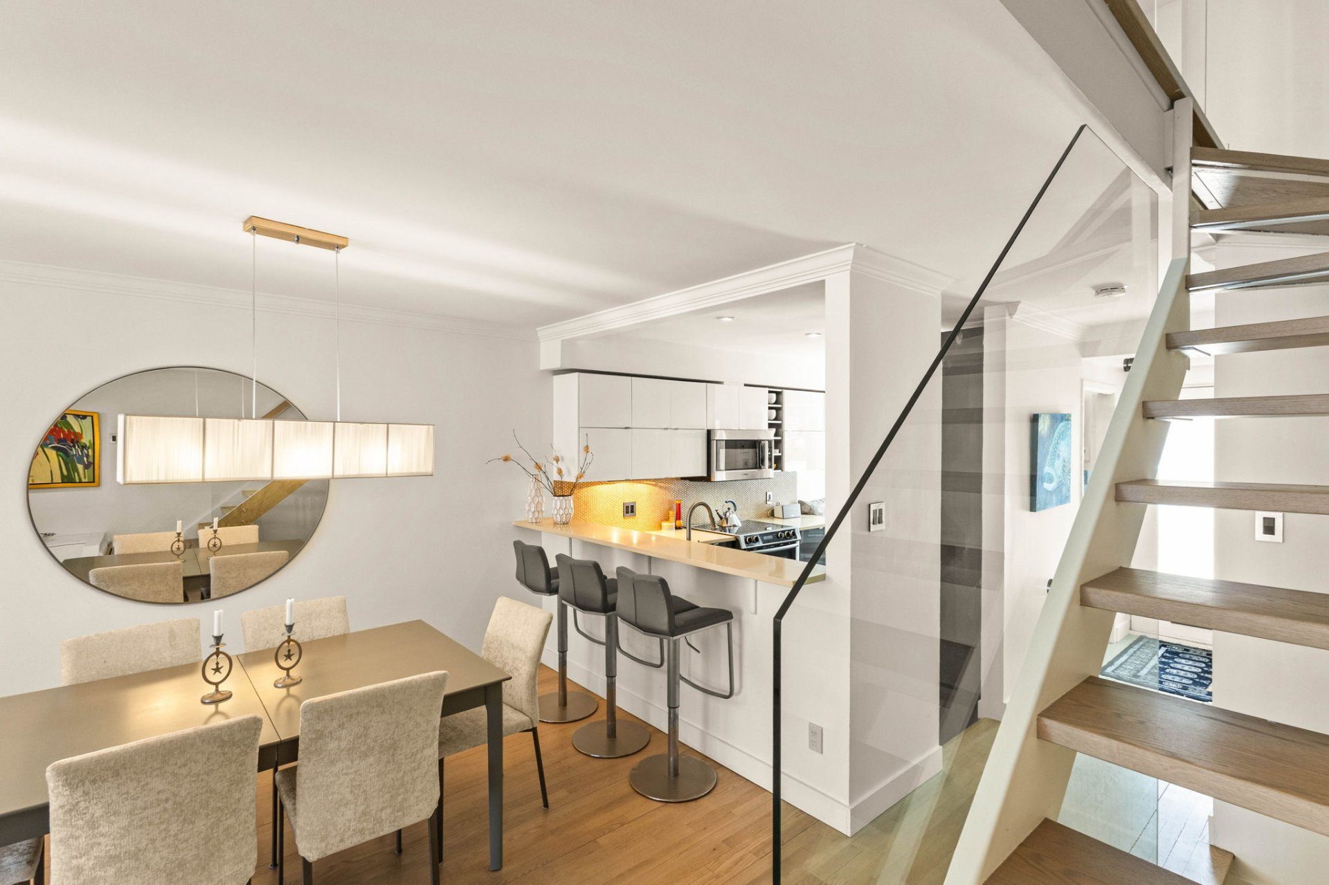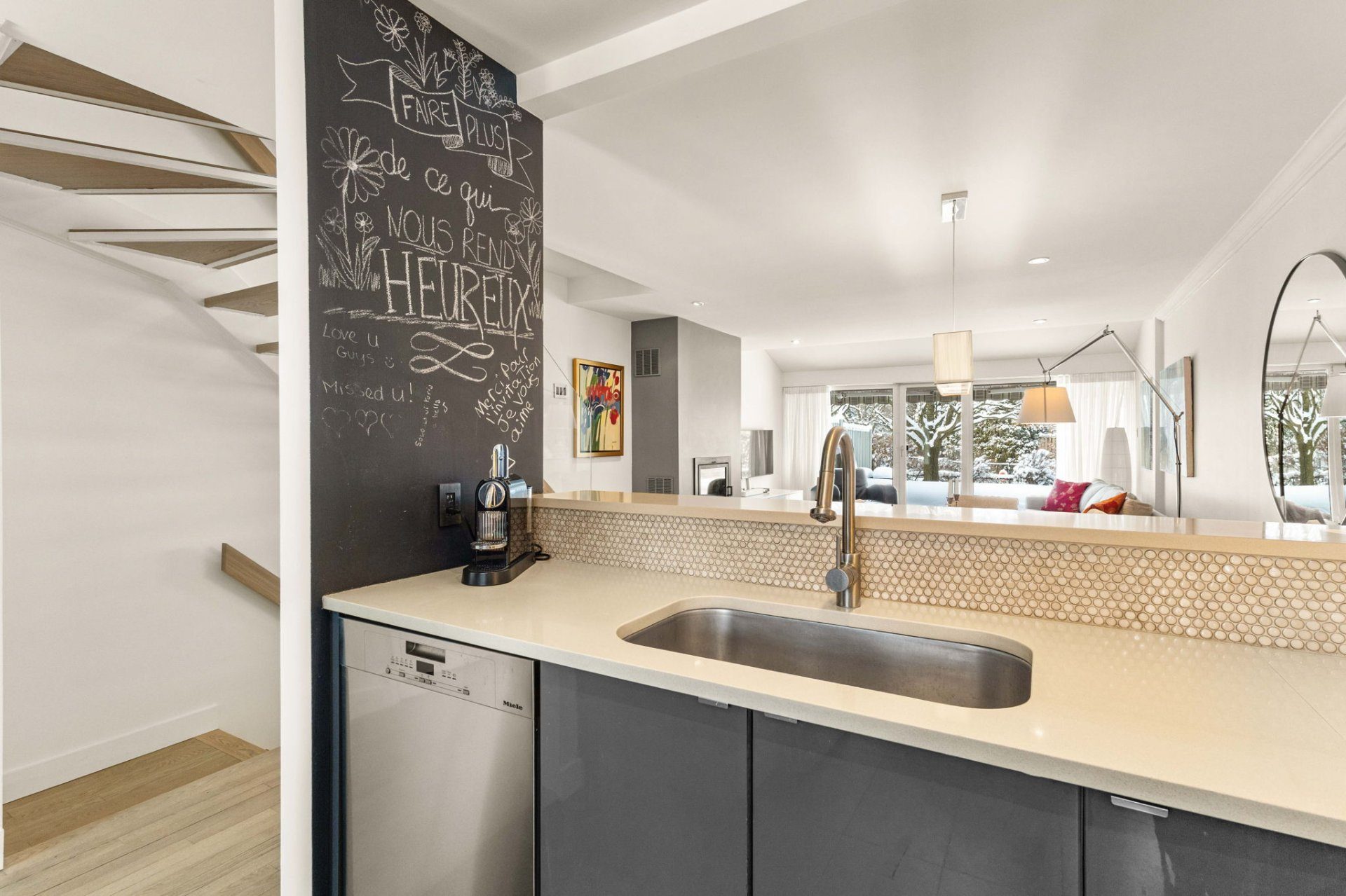 Maison de ville rénovée, offrant un confort optimal : 2 chambres à coucher avec possibilité d'une autre càc ou d'une salle familiale,1 salle de bains et 1 salle d'eau. La cuisine gourmet, ouverte sur le séjour, dispose de nombreux comptoirs et rangements, ainsi qu'un coin-repas inondé de lumière naturelle. Le séjour profite d'une belle fenestration, d'un nouveau foyer à haute efficacité conforme aux normes et d'une vue dégagée sur l'arrière. Profitez également de 2 grandes terrasses sur 2 palliers, d'un garage et d'une piscine extérieure commune. Cette option clé en main vous offre le confort d'une maison sans les tracas de l'entretien.