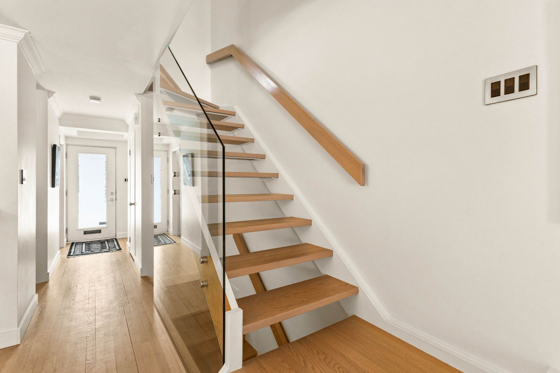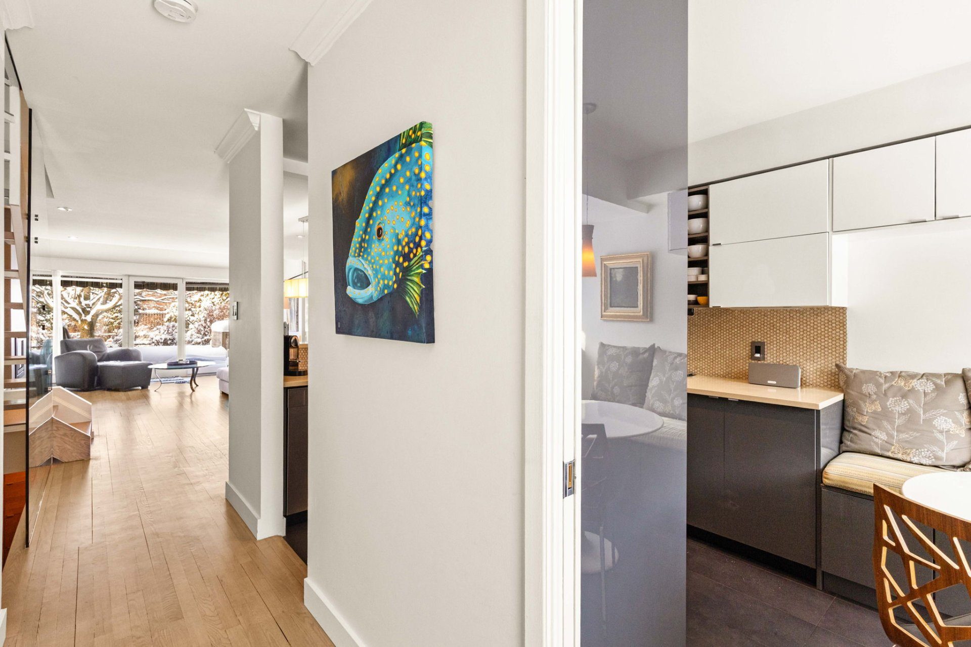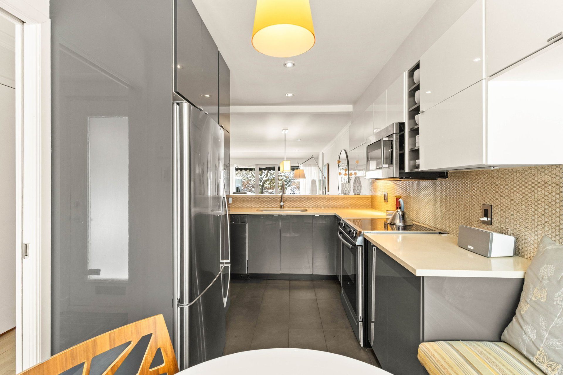 Maison de ville rénovée, offrant un confort optimal : 2 chambres à coucher avec possibilité d'une autre càc ou d'une salle familiale,1 salle de bains et 1 salle d'eau. La cuisine gourmet, ouverte sur le séjour, dispose de nombreux comptoirs et rangements, ainsi qu'un coin-repas inondé de lumière naturelle. Le séjour profite d'une belle fenestration, d'un nouveau foyer à haute efficacité conforme aux normes et d'une vue dégagée sur l'arrière. Profitez également de 2 grandes terrasses sur 2 palliers, d'un garage et d'une piscine extérieure commune. Cette option clé en main vous offre le confort d'une maison sans les tracas de l'entretien.