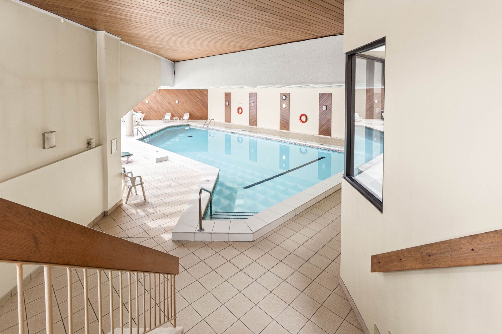 LOGGIA II. Spacieuse unité de coin située au 3e étage, offrant 3 chambres à coucher, 2 salles de bains, un vaste espace de vie à aire ouverte, ainsi que 2 garages et un espace de rangement. Cette résidence a été entretenue avec un soin méticuleux au fil des ans. L'aire de vie impressionne par ses bonnes dimensions et sa fenestration abondante, procurant une luminosité exceptionnelle. Une unité rarement disponible sur le marché, offrant une superficie supérieure à celle du même modèle situé à l'étage inférieur. L'immeuble vous offre une piscine intérieure, un sauna et un gym. Il est à noter que les frais de condo incluent aussi l'eau chaude.