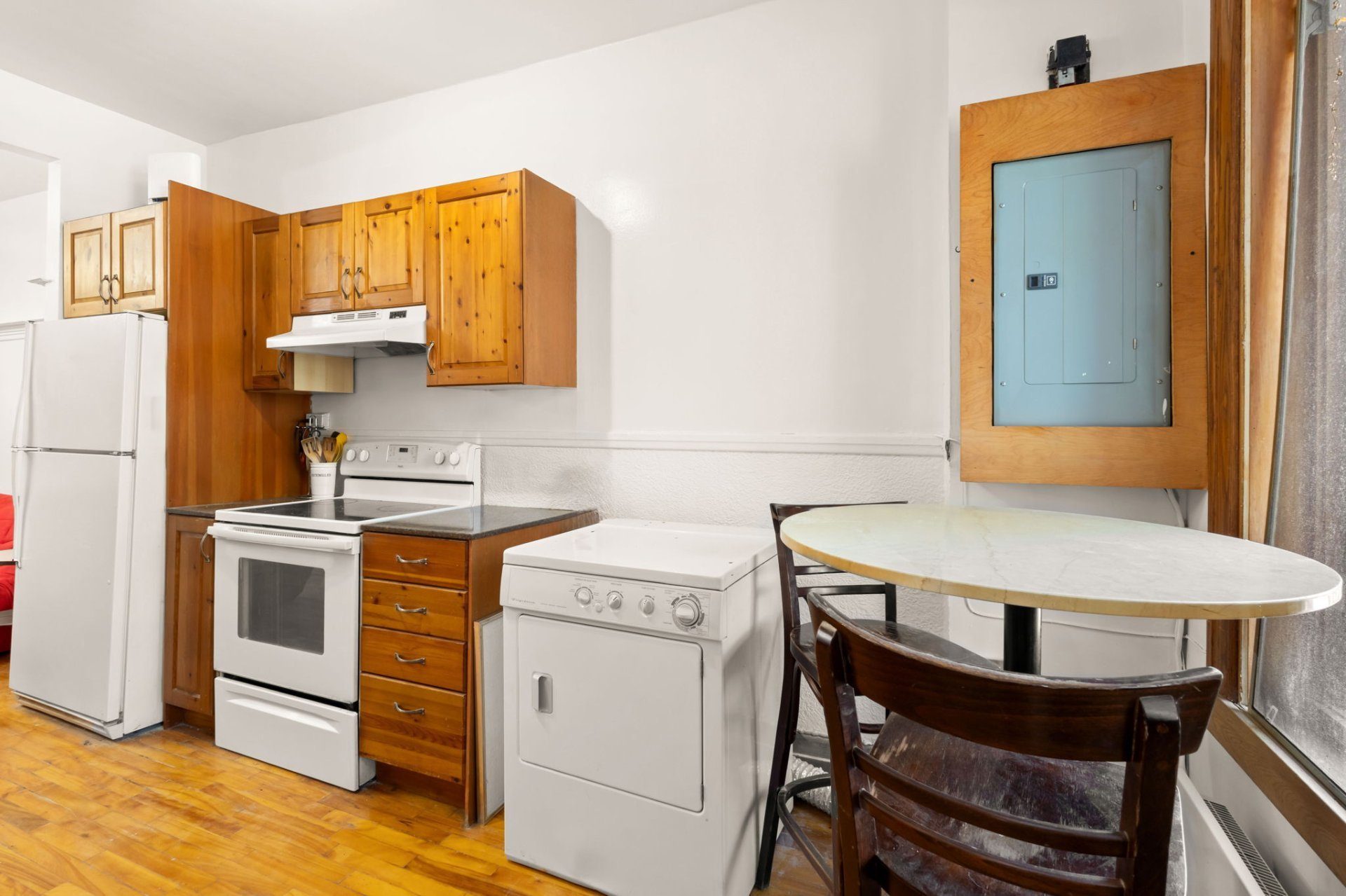 1+1 chambre, idéal pour une chambre et un bureau à domicile. Salle de bain toute neuve avec douche italienne. Cuisine récente vec comptoir en granit. Rénovations qui ont su conserver le cachet et les boiseries d’époque. Électricité et plomberie neuve avec convectairs. Salon, coin repas et cuisine à aire ouverte. Petit balcon semi-privatif avec vue en biais sur le parc.